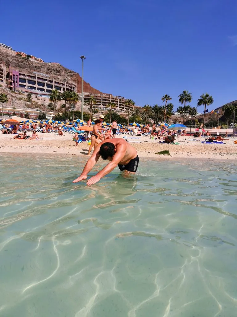 Amadores er en fin strand med importert sand som har mange gode restauranter. Vel verdt en dag her. Vi var heldige med både vær og temperaturen i vannet, 27 gr i sjøen gjør noe med deg, og er bare helt nydelig. Så bading ble det mye av.