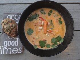 Skyll kikertene og legg de på bakepapir på et stekebrett og stek de på 200 gr varmluft i ca 25 min. De skal bli godt stekt og sprø.