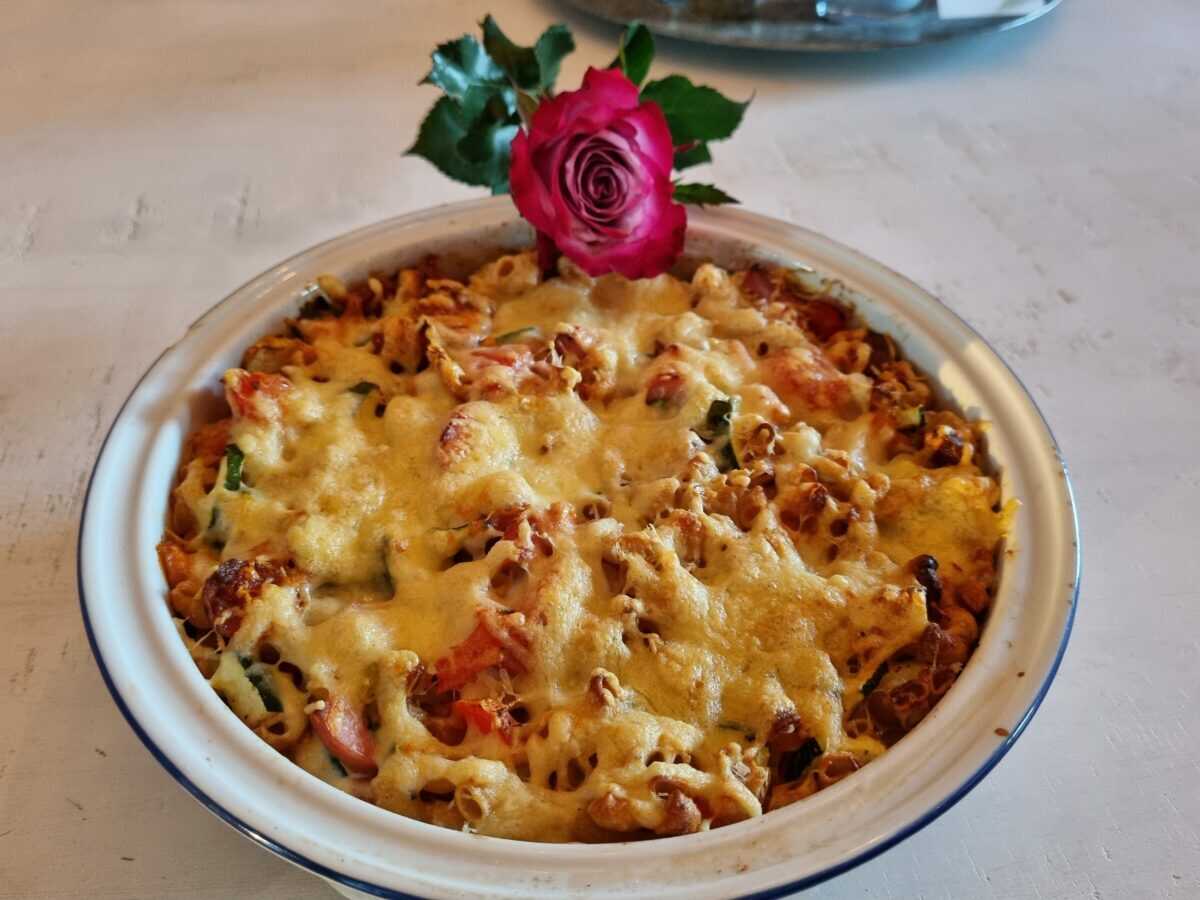 I denne gratengen kan du feks bruke rester fra en kjøttmiddag, rester av pølser, skinkepålegg osv… Alt er lov. 😉 20 minutter i ovnen og vips er middagen ferdig. Helt topp!! 🙂