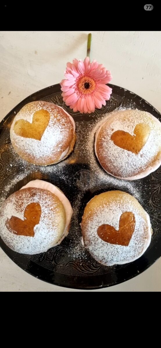 Siden det var fastelaven så pisket jeg krem og fylte de med sukkerfritt jordbærsyltetøy, altså en digg sukkerfri jordbærkrem. Da ble det kos for alle.