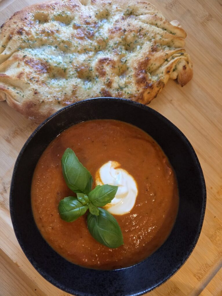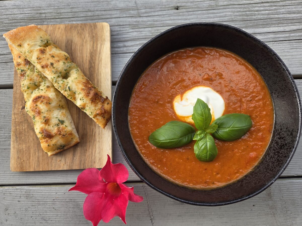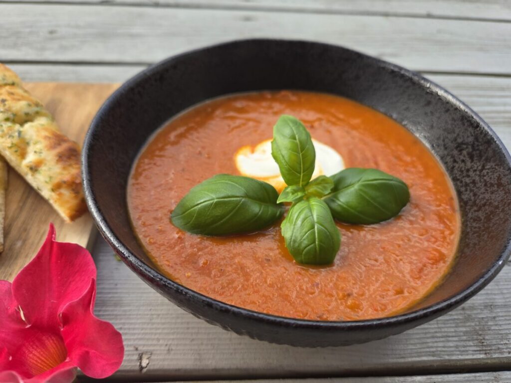 Ahhh, denne fyldige og smaksfulle tomatsuppen er bakt i ovnen slik at alle de gode smakene kommer frem. Superenkelt og smart, ikke sant? Og gurimalla for noen smaker det blir! 🙂