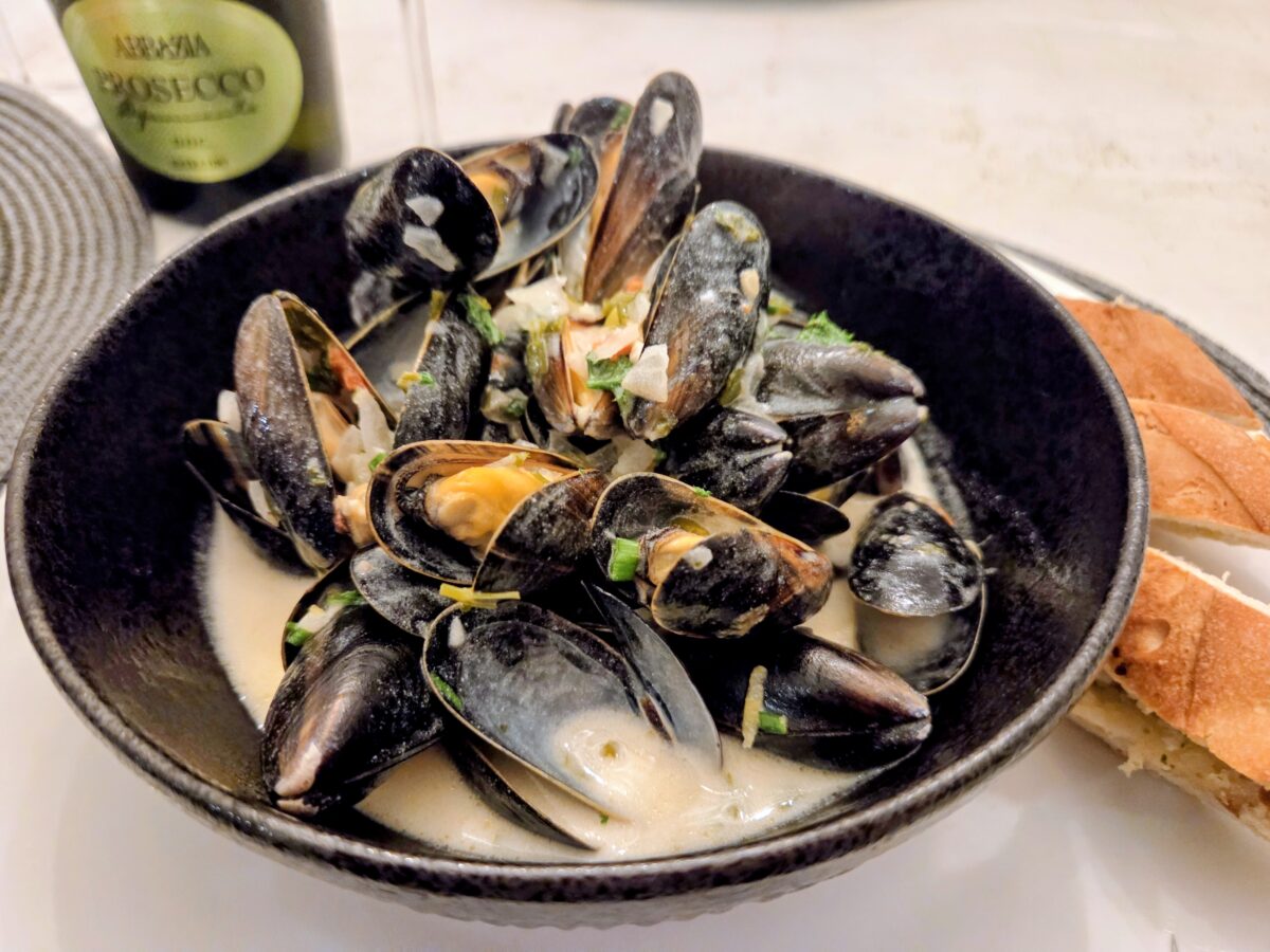 Blåskjell er såå godt synes jeg og såå enkelt og tilberede. 🙂 De skal jo bare dampes i ca 2 minutter så her går det unna. 😉 Sett av 10 minutter til forberedning og mye er gjort. For meg så må blåskjell ha hvitløk, chili og sjalottløk smak i seg…gjerne med en god fløtekraft så jeg kan dyppe brødet i mens jeg spiser. Mmmmm.. Og her dampet jeg de i prosecco, men du kan også bruke hvitvin. Ferske urter er også et must synes jeg.