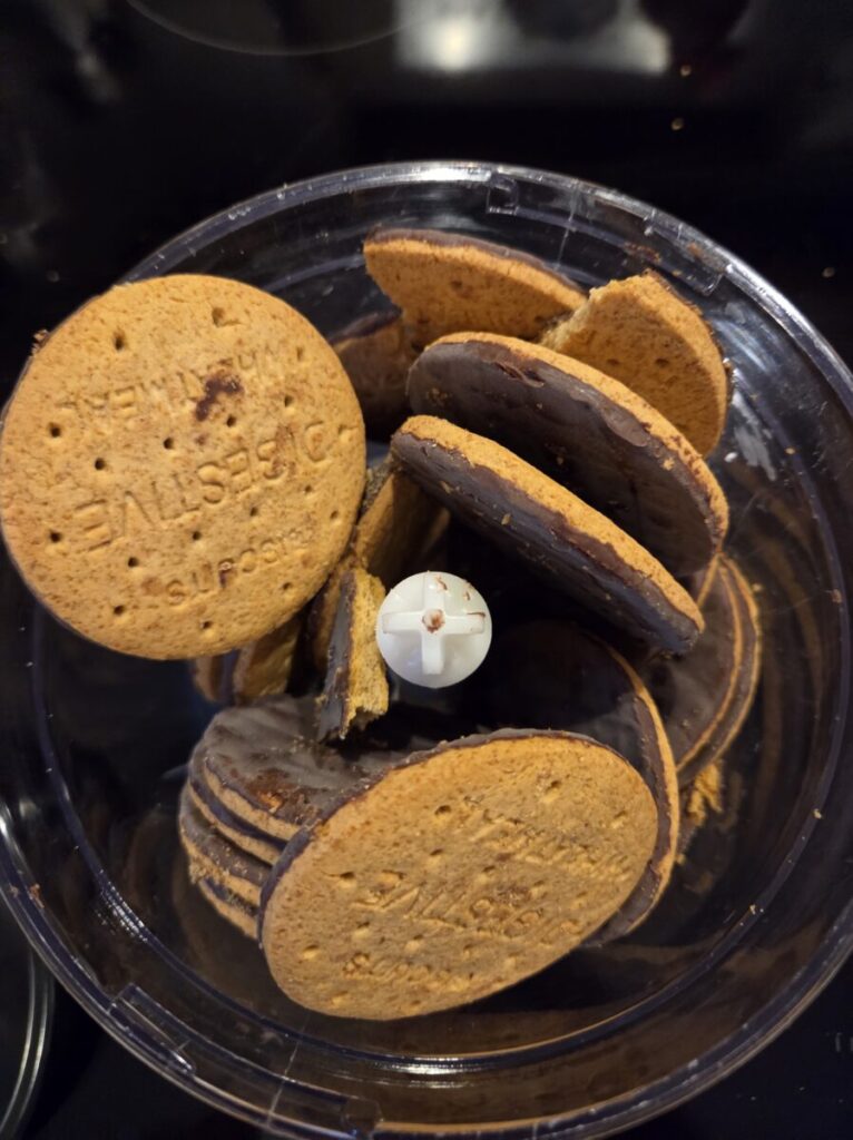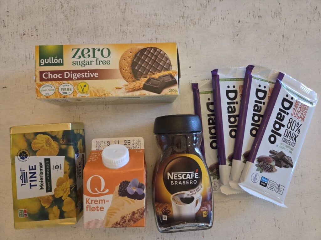 - 1-2 pakker sukkerfri kjeks. (jeg brukte 1 pakke på 270 gram)