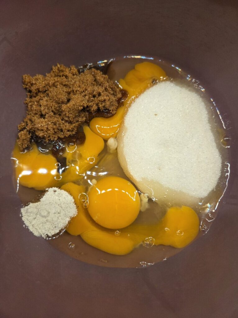 Smelt smøret og avkjøl litt. Pisk egg, sukker og vailjesukker til en luftig og lys masse med en mikser.