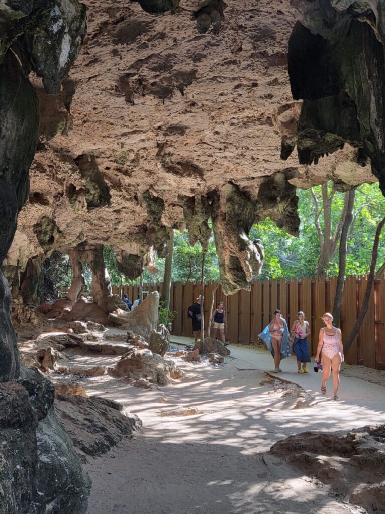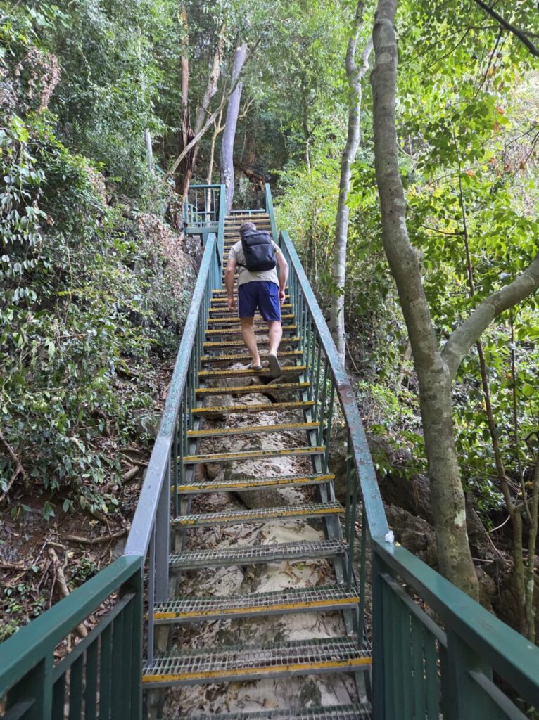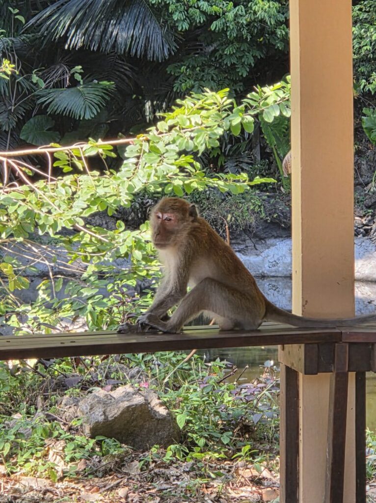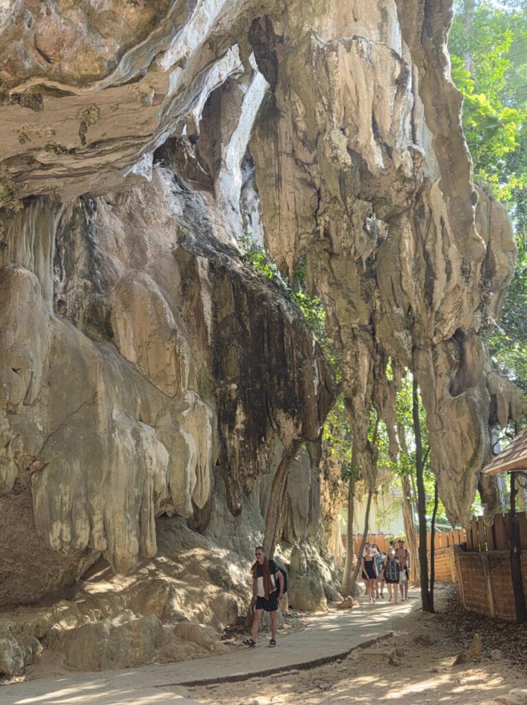 Vi gikk monky stien og fikk en opplevelssrik gåtur rundt øyen. Apekatter var det overalt, vi var forsiktige og gikk ikke nærme da de ofte kan bite og bærer på mange sykdommer. Men så utrolig spektakulært å gå igjennom dette magiske fjell landskapet med lianer som hang ned overalt fra høye fjell og masse huler med flaggermus i. Det var som å gå i en eventyrskog.