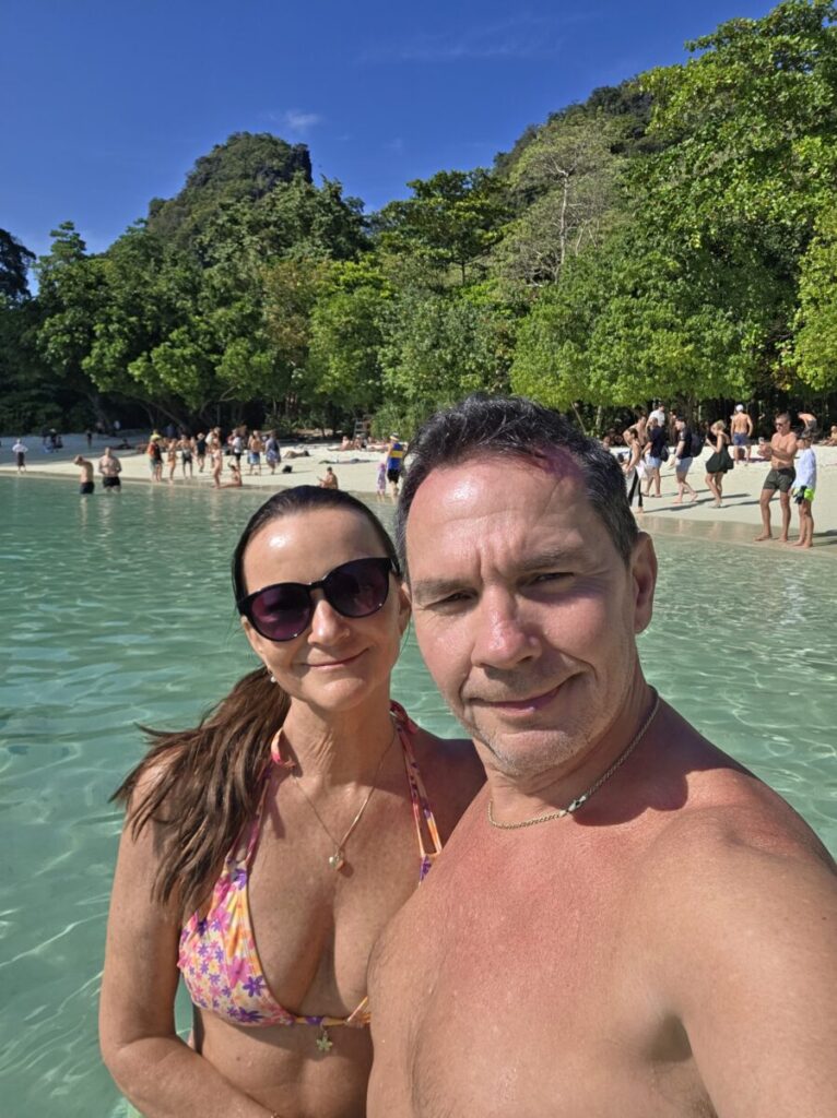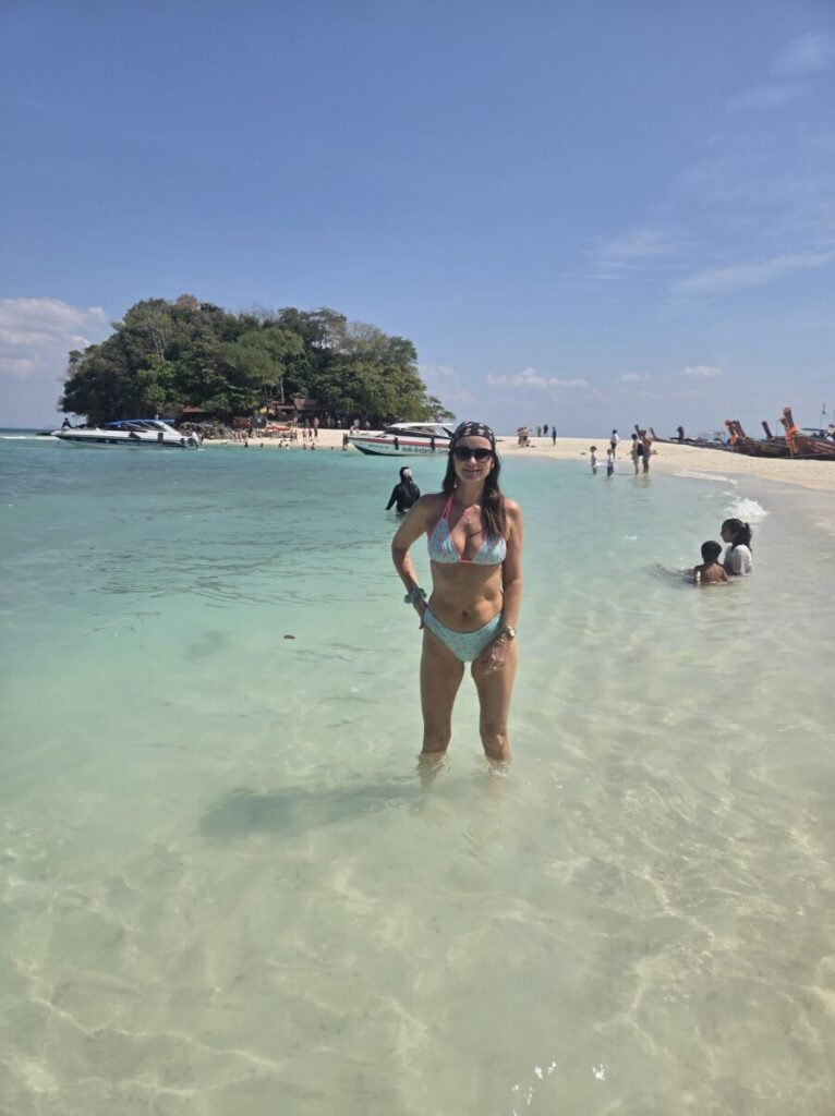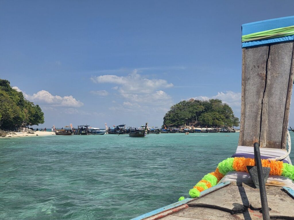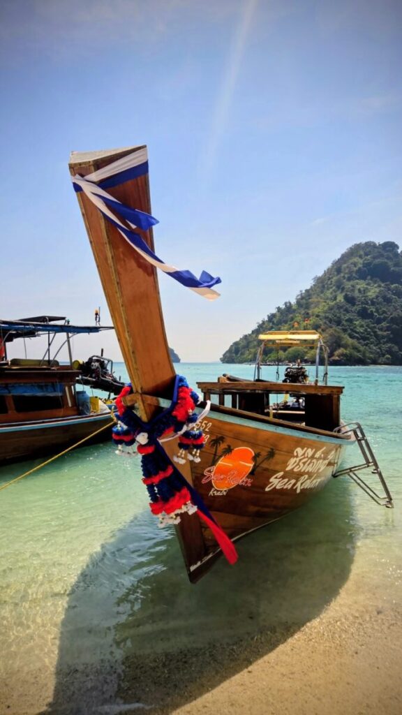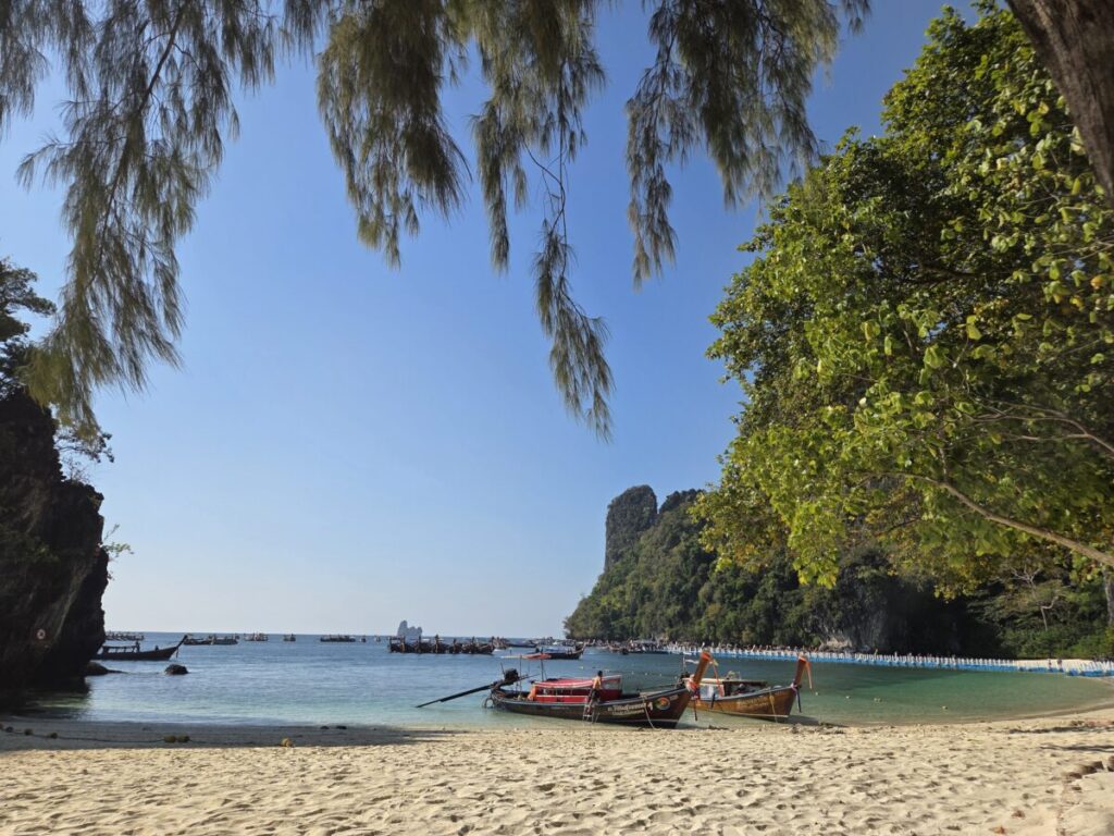 Vi brukte longtail båter ut til flere øyer de neste dagene. Vi leide også en privatbåt som bare vi 4 i reisefølge hadde alene. Da koset vi oss med cava og deilig frukt som kapteinen ordnet til oss. Turen gikk til Hong Island, Kho Hong som de sier, og 3 andre små øyer utenfor. Alle stedene var ubeskrivelig vakre med nydelige strender og natur. På Hong gikk vi trappene opp til toppen hvor det var 360 grader utsikt. Varmt og slitsomt opp trappene men absolutt verdt det når vi ankom toppen. WOW for en utsikt! Fikk vite at Hong betyr Pool, altså basseng på Thai. Og det var nesten som å bade i et basseng på stranden der. 🙂