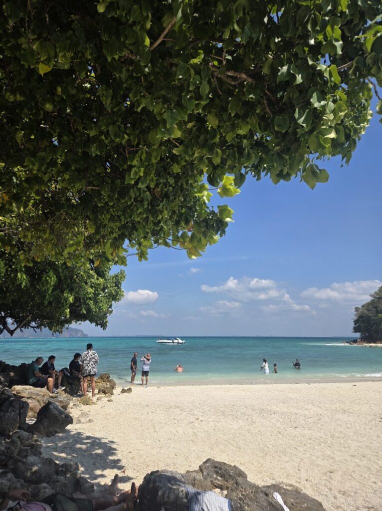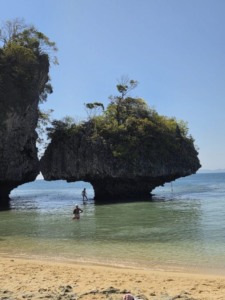 Longtail båt til Tup island var også utrolig vakkert og fasinerende. Her åpenbarte det seg vakre landskap og strender jeg bare kan drømme om! Vannet var så turkist lysegrønt og utrolig deilig. Jeg måtte klype meg i armen for det var så vakkert der. Det var mulig og gå til øyen på andre siden ved å følge et tau i vannet, men når vi skulle gå over kom tidevannet med understrøm og vi ble hanket inn av vaktene siden det ikke var trygt. Etterhvert ble sandbanken i midten oversvømmet med vann. 🙂 Men vi koset oss med iskald drikke og lå mer i vannet enn på stranden og koset oss der i noen timer.