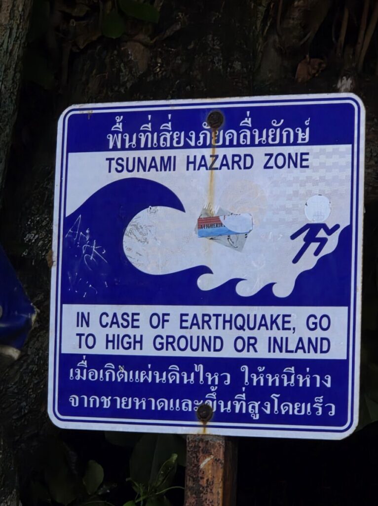Så var vi innom Kho Pakbia hvor vi koset oss et par timer. Her var det også veldig fint og vi badet masse. Tsunami skilt så vi overalt og det var også møtepunkt -skilt for hvor man skal møtes hvis det kommer en tsunami. Så det er trygt og vite og nå har de også gode varslingssystemer, noe de ikke hadde i 2004. Når det gjelder farer i vannet så se opp for Kube maneten. Den ble observert på flere strender, på Hong så vi flere brennmanter men de var ikke så farlige. Kube maneten er ekstrem giftig med lange tråder. Det var vakter som fulgte med på strendene og sa ifra når manetene nærmet seg. Så viktig å passe på. Noen fisker var også giftige men de så eller opplevde ikke vi.