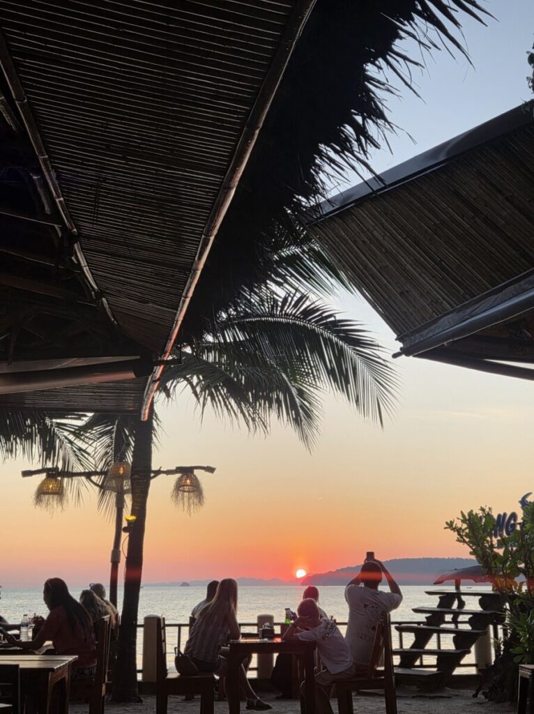 På kvelden var det supergøy å rusle i sentrum i Ao Nang med strand på ene siden og restauranter, barer og shopping på andre. Her var det liv og røre og bare noen skritt fra hotellet vårt. Vi så på flere fasinerende flammeshow på stranden på kveldene, drakk verdens beste Pina Colada overalt og sendte opp lyslykter over havet. Ubeskrivelig magisk! På kveldene var det alltid 28 grader og vi nøt januar på en annen måte enn hjemme i kulden. 😉