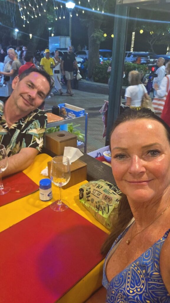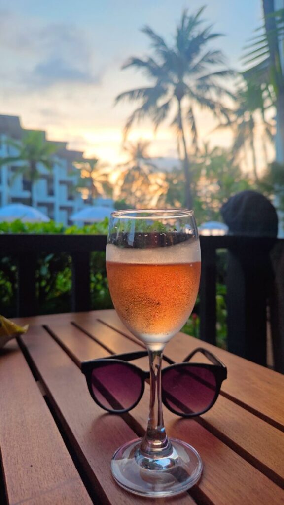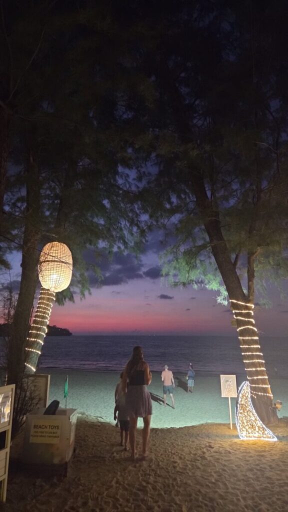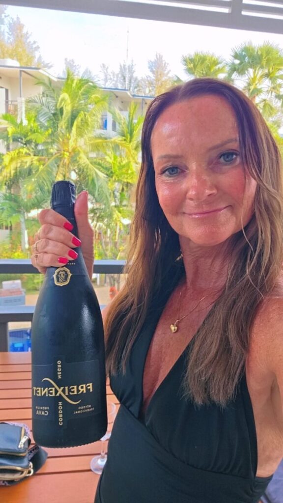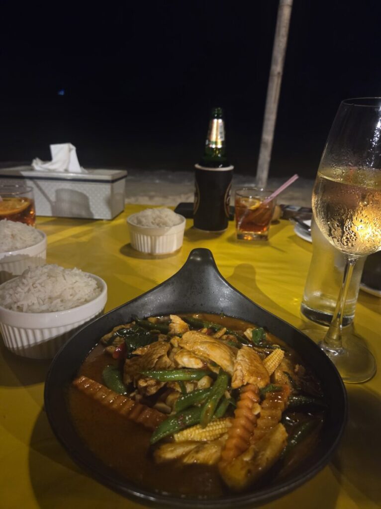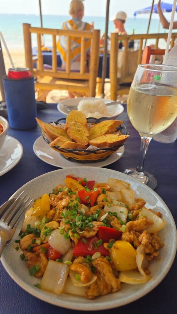 Hver kveld gikk vi ut på stranden og spiste på restauranter i sanden, barbent selvsagt. 🙂 Ubeskrivelig deilig. Og som Cavagal jeg er må jeg si at jeg koset meg med cava flere kvelder på denne reisen, men flaskene hadde jeg kjøpt med hjemmefra. 😉 For i Thailand fantes det bare prosecco (kun noen steder) og søt sparkeling wine.