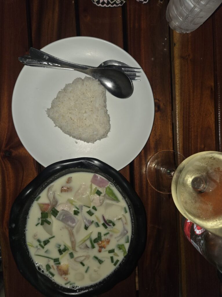 Vi spiste såå mye deilig thai mat og det var så utrolig billig. En middag kunne koste fra 60 bath. Det er latterlige 30 kr. 😉 Så livsnyteren i meg fråtset i fantastiske thairetter flere ganger om dagen. En ren nytelse. 🙂 Supper som Tom ka gai spiste jeg nesten hver dag, ubeskrivelig godt! Så her kommer det noen fristende matbilder. 😉