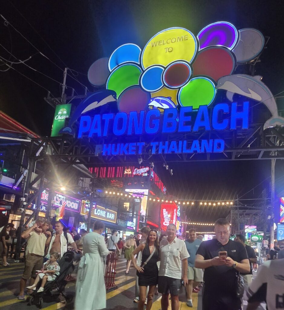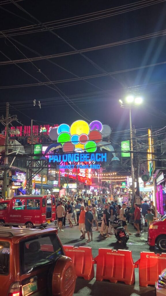 En kveld dro vi til Patong by, (ca 2.5 mil fra der vi bodde) og til den kjente gaten Bangla Road. Her var det et virrvarr med sykt masse mennesker, fæle lukter, høy musikk og selgere overalt, så det var utrolig slitsomt. Men vi spiste en god middag… 🙂 Jeg er veldig glad vi ikke bodde i Patong, denne byen fristet meg ikke. Så vi tok en disco tuk tuk hjem igjen med full musikk 🙂 og var glad vi var tilbake på den fine og rolige stranden vår. 😉