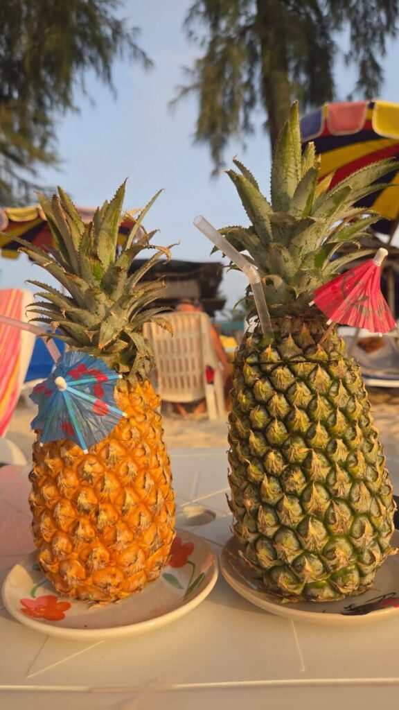Pina Colada fikk jeg skikkelig dilla på i Thailand. Den var sykt god overalt og laget med fersk ananas og kokosmelk, og selvfølgelig kokosrom. Men gud for noen deilige smaker i varmen. Så jeg unnet meg en hver dag. 🙂 🙂