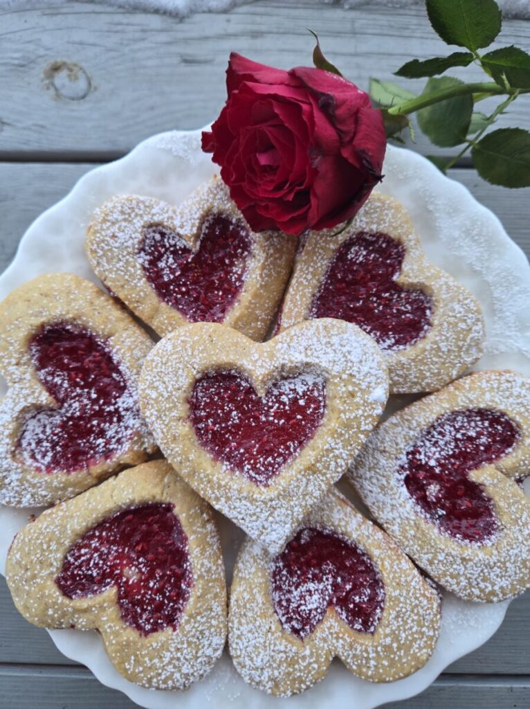 Disse deilige hjerte kjeksene fant jeg oppskrift på i et magasin. De så veldig gode ut så dette måtte jeg prøve. Og de ble super gode! <3 Og dette er jo ikke feil å lage til valentinsdagen eller lag de til en god venn for å glede. 🙂