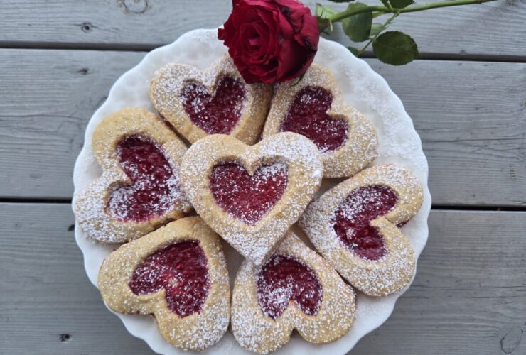 Disse deilige hjerte kjeksene fant jeg oppskrift på i et magasin. De så veldig gode ut så dette måtte jeg prøve. Og de ble super gode! <3 Og dette er jo ikke feil å lage til valentinsdagen eller lag de til en god venn for å glede. 🙂 Deilig smak av vanilje og et hint av sitron med søtt syltetøy ...